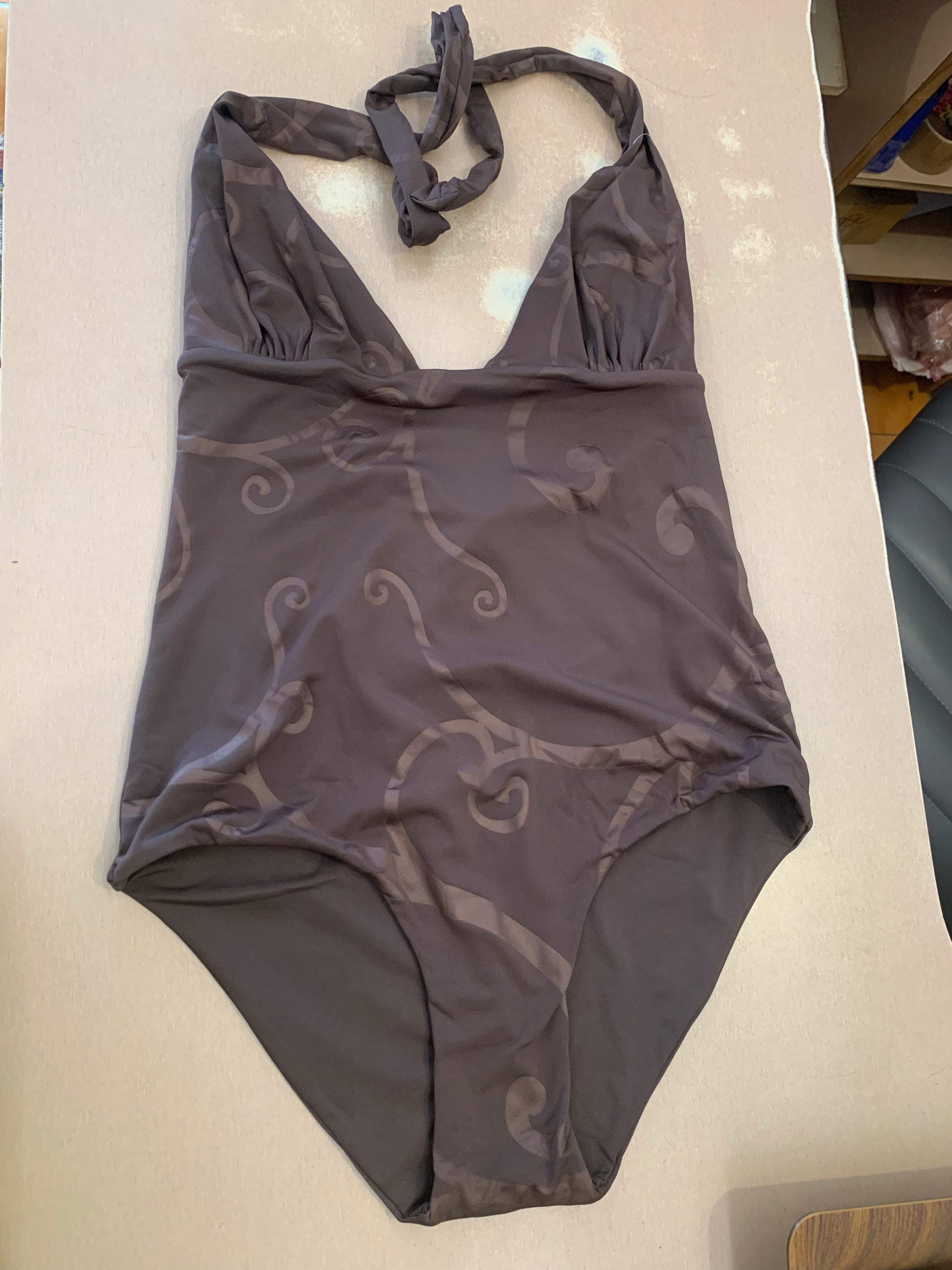 This sepia toned one-piece swimsuit has a flattering fit with its simple yet elegant design. Crafted to provide comfortable support, it enhances your natural shape while ensuring ease of movement. Ideal for swimming or relaxing by the water.