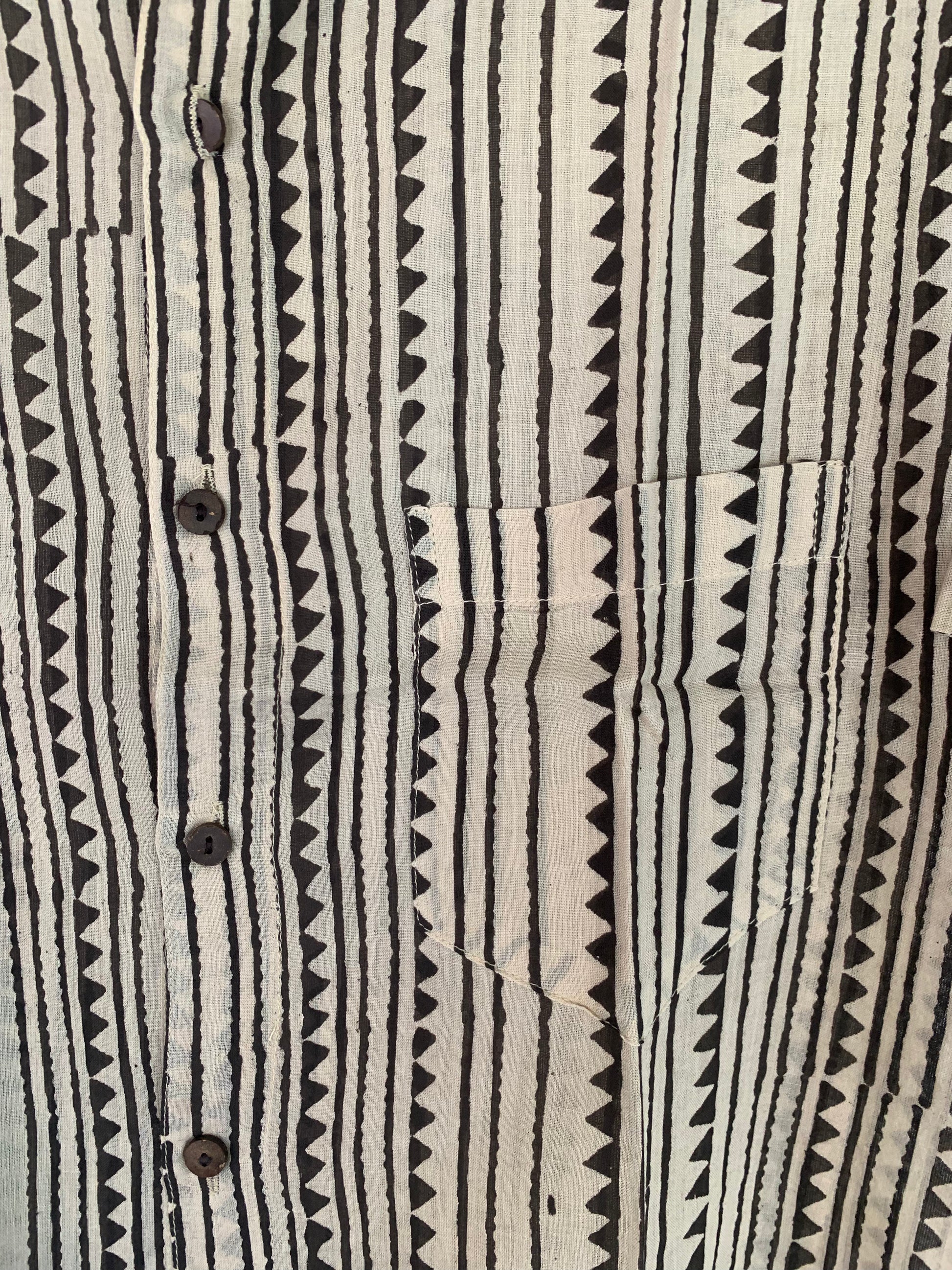 Experience airy lightness and comfort with this Hand block Printed Shirt, crafted from pure fine cotton to keep you feeling fresh all day. The hand block prints are unique. French seams ensure durability and hand-stitched buttons for a perfect finish you can rely on.