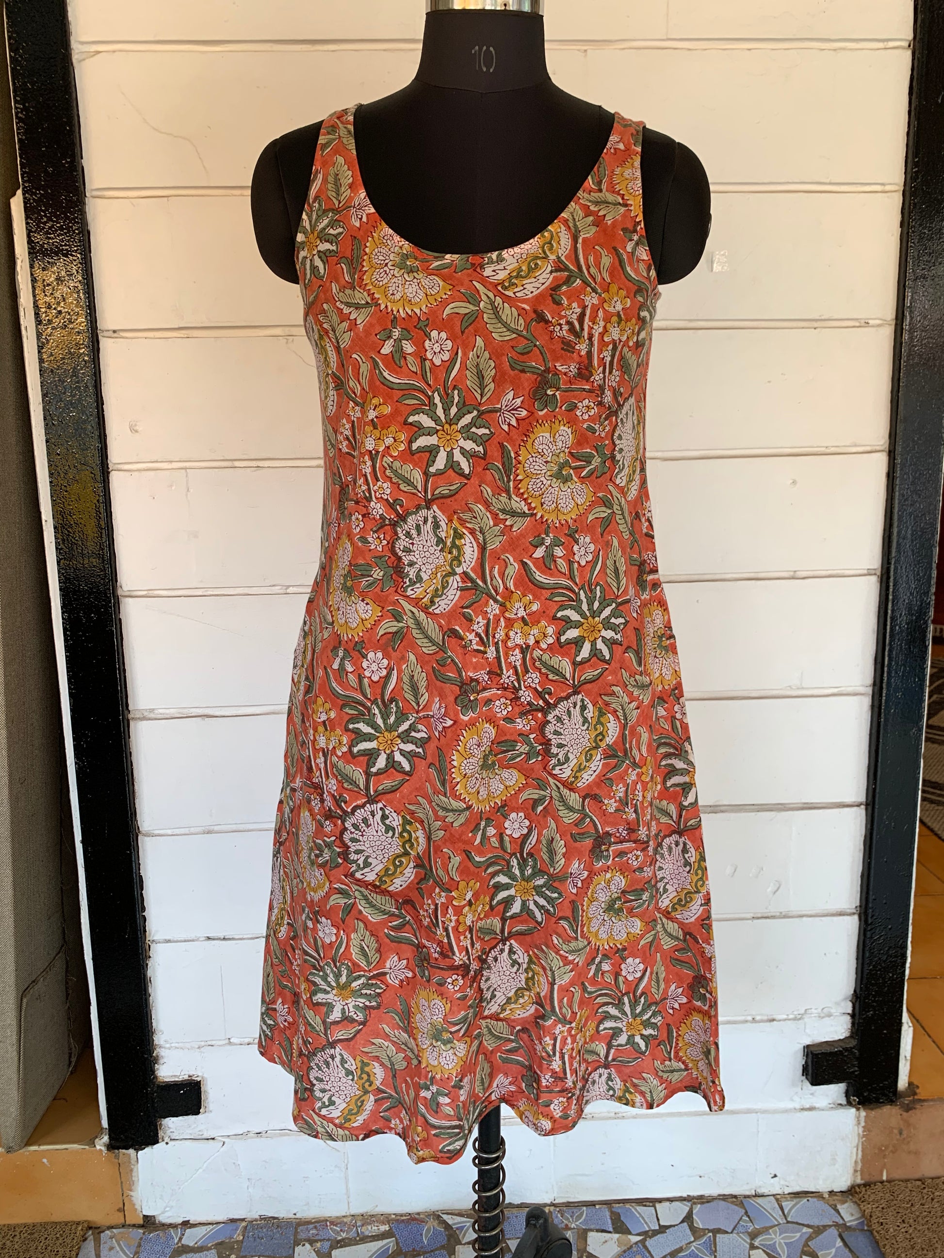 Orange Floral Hand Block Print Uma Dress