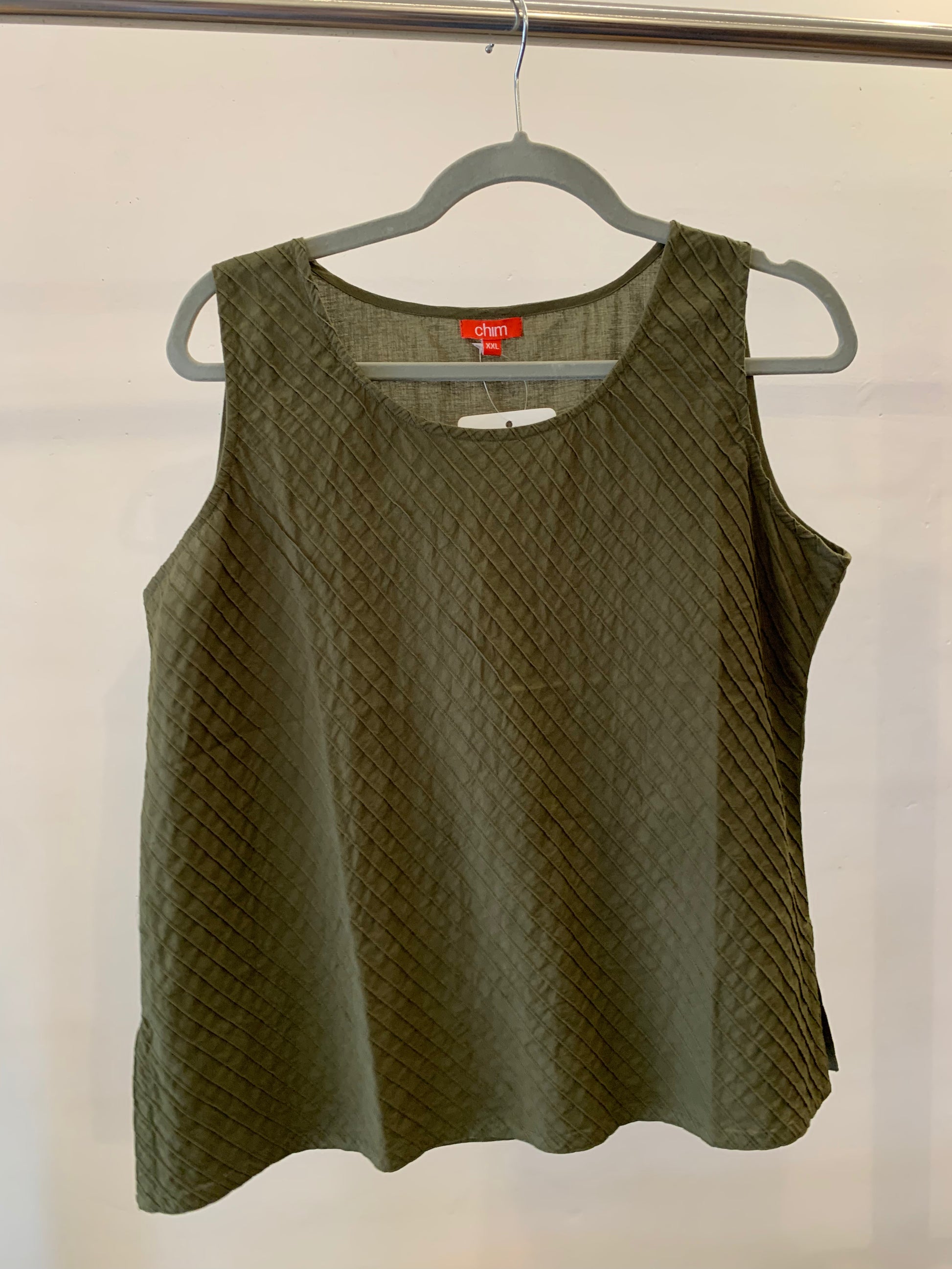 Sage Green Sleeveless Pintuck Top