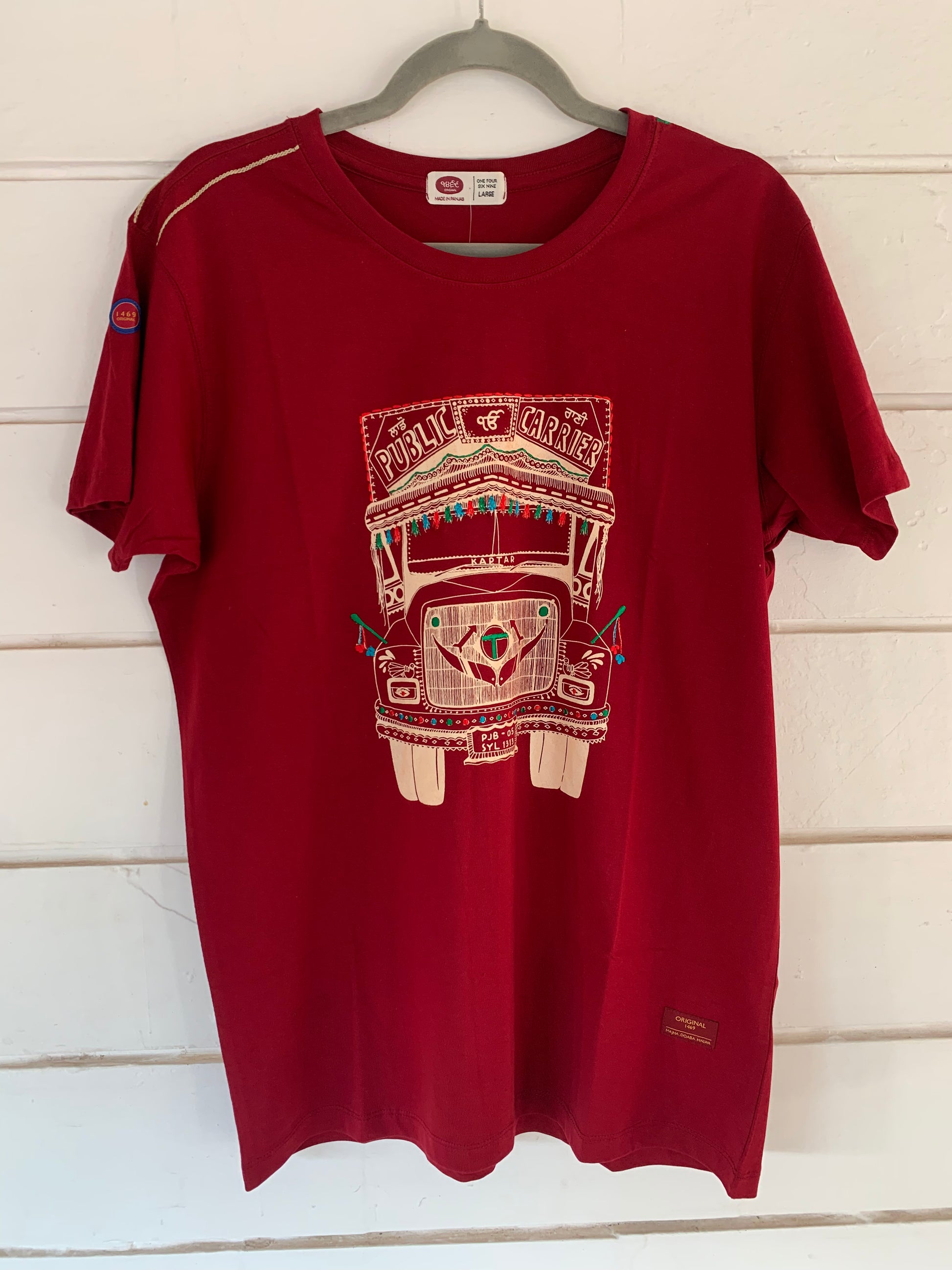 Crafted from premium soft cotton, this T-shirt delivers all-day comfort and breathability. The colorful Truck print with embroidered outlines adds a playful, artistic touch to your look. Designed for durability, its vibrant colors stay fresh and bright wash after wash — a true wardrobe favorite.